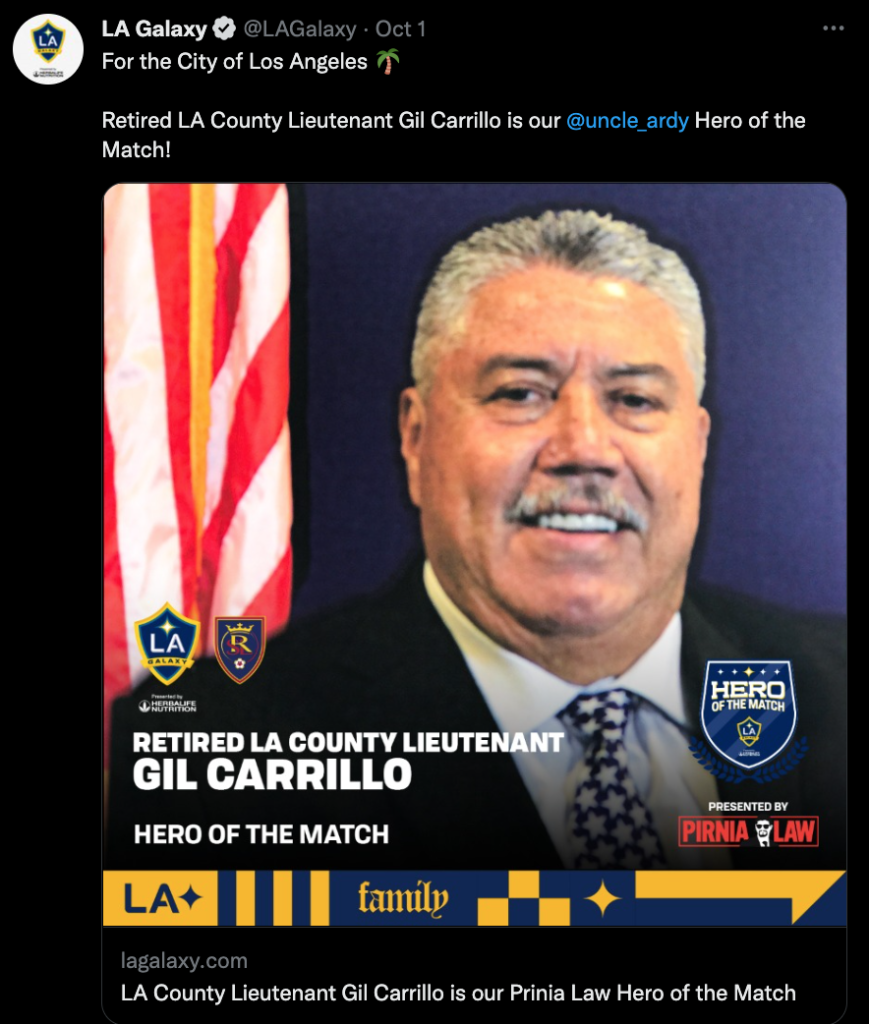 LA Galaxy Honors Retired LASD Lieutenant/US Army Veteran Gil Carrillo