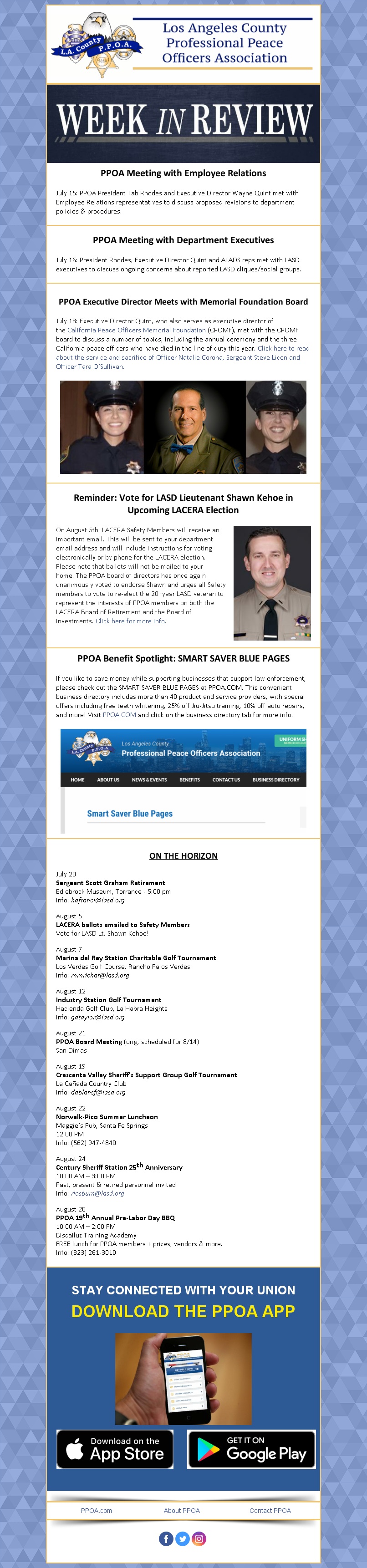 We want all PPOA members to stay informed and stay connected. If you don’t receive the PPOA “Week in Review” email every Saturday morning, please send your name, employee number and personal email address to info@ppoa.com.