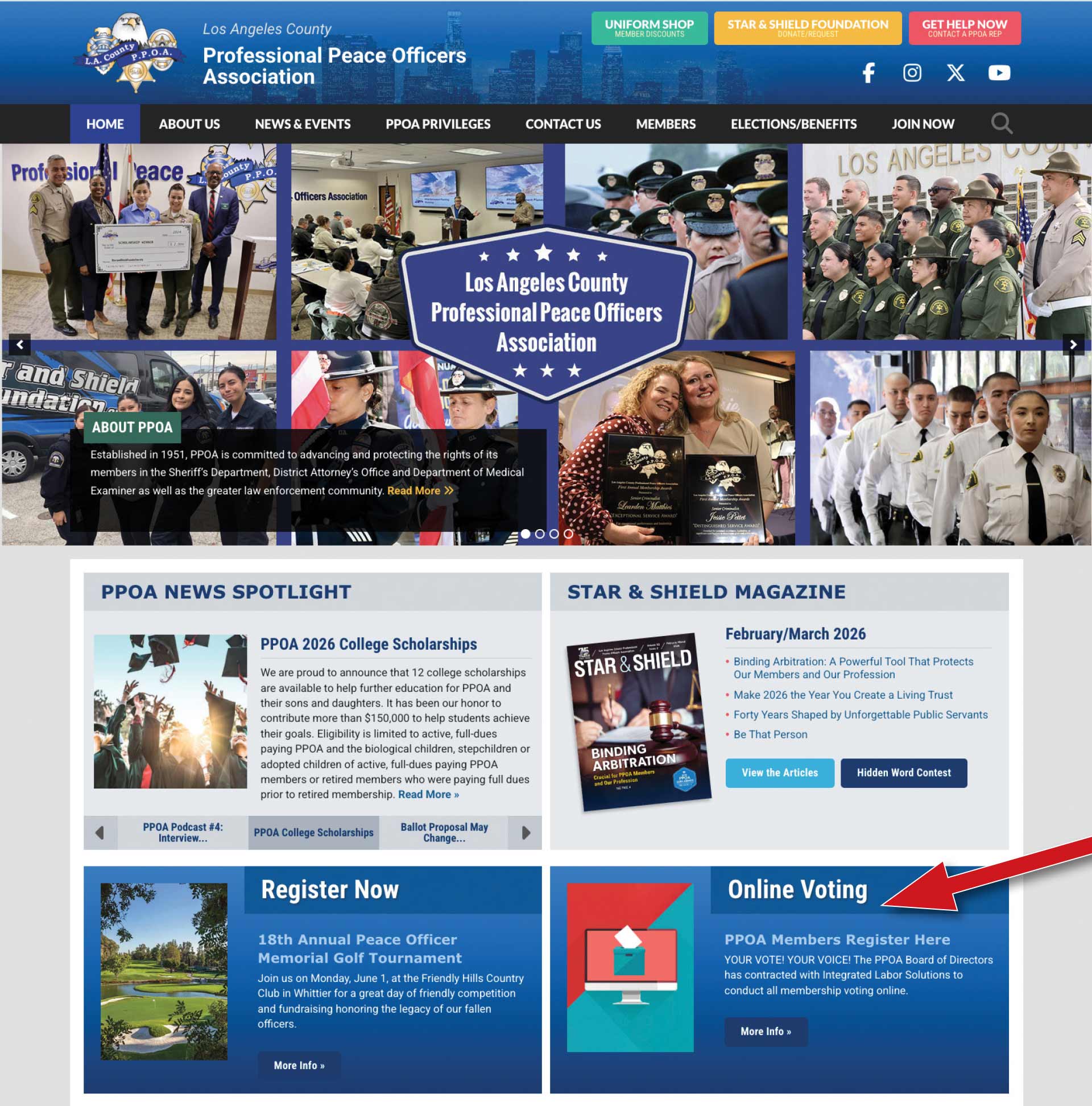 I need you all to make sure you are registered to vote online for all PPOA elections, polls and other matters. Simply visit PPOA.com and scroll down until you see Online Voting (see image below). Click “PPOA Members Register Here” and follow the prompts.