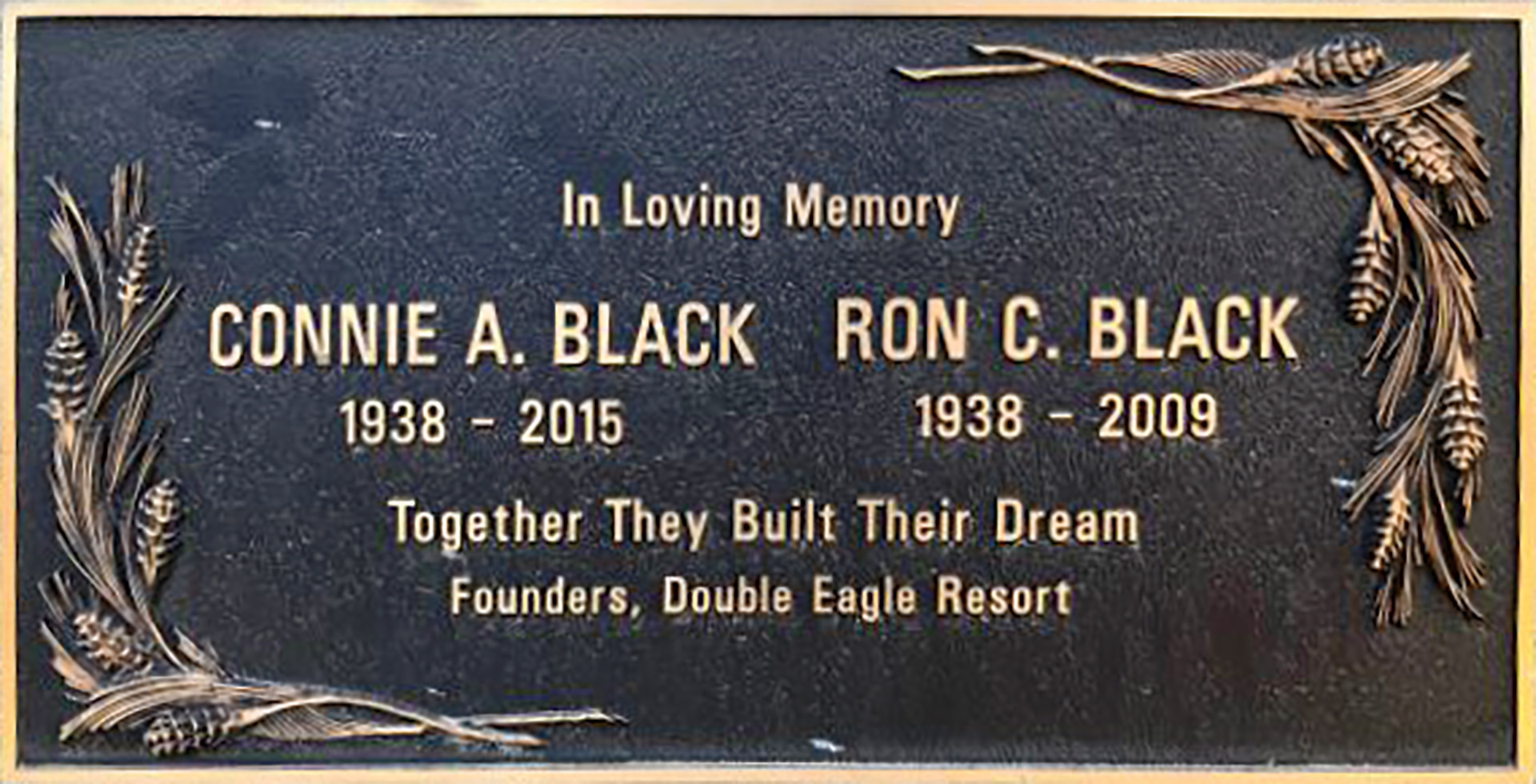 Upon retirement, Ron and Connie built a family ranch in June Lake, a setting that was a part of Ron’s life for 42 years. Ron called it his “little piece of heaven,” and it’s where he taught his children and grandchildren about his love of nature, the High Sierras, fishing and hunting. He served as foreman of the Mono County Grand Jury and on the County’s Planning Commission. In 1998, Ron and Connie opened the first phase of Double Eagle Resort and Spa, a labor of love that has grown into a highly regarded, four-season destination resort. Although the Blacks have both since passed, the fact that “together they built their dream” is acknowledged on a memorial plaque mounted at the resort.